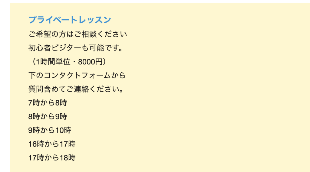 プライベートレッスンのご案内